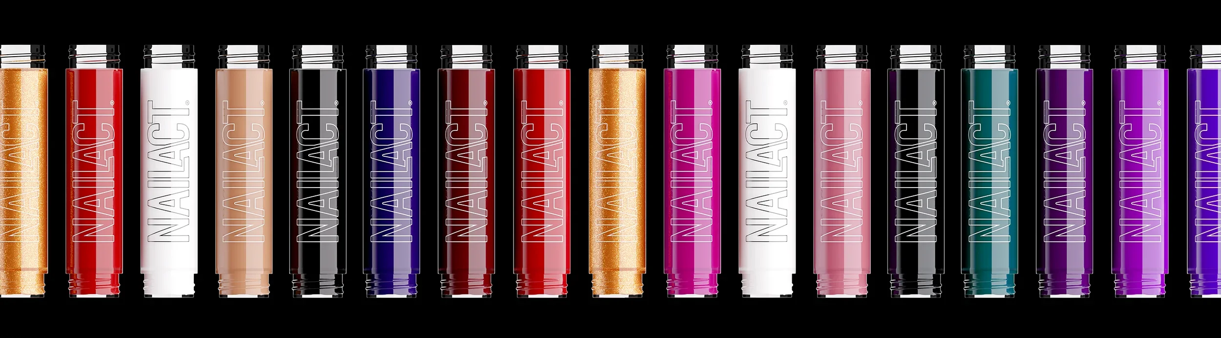 NailAct's color cartridges using the patented Refill System are available in a wide range of tones, from elegant nudes to crazy metallics.